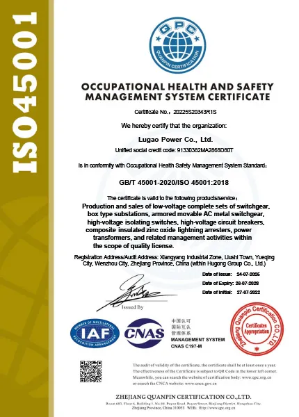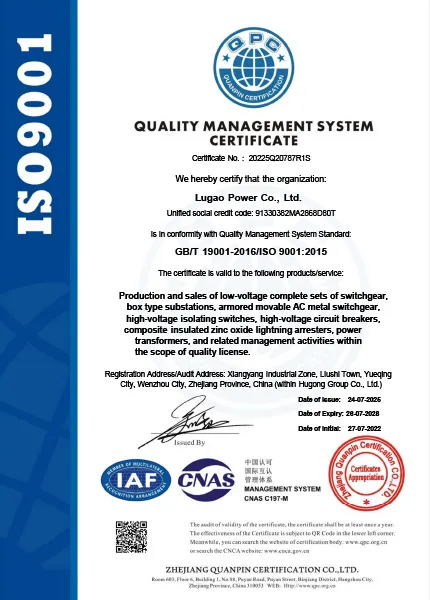 Lugao Power Co., Ltd предлагает полный ассортимент продукции, включая распределительные устройства высокого и низкого напряжения, силовые трансформаторы, вакуумные выключатели, автоматические выключатели на основе гексафторида серы, высоковольтные изолирующие выключатели, молниеотводы, высоковольтные трансформаторы тока и высоковольтные линии электропередачи. трансформаторы. Эти продукты широко используются в современных городских электросетях и соответствуют международным стандартам, таким как CE, ISO, IEC, GB и ANSI.